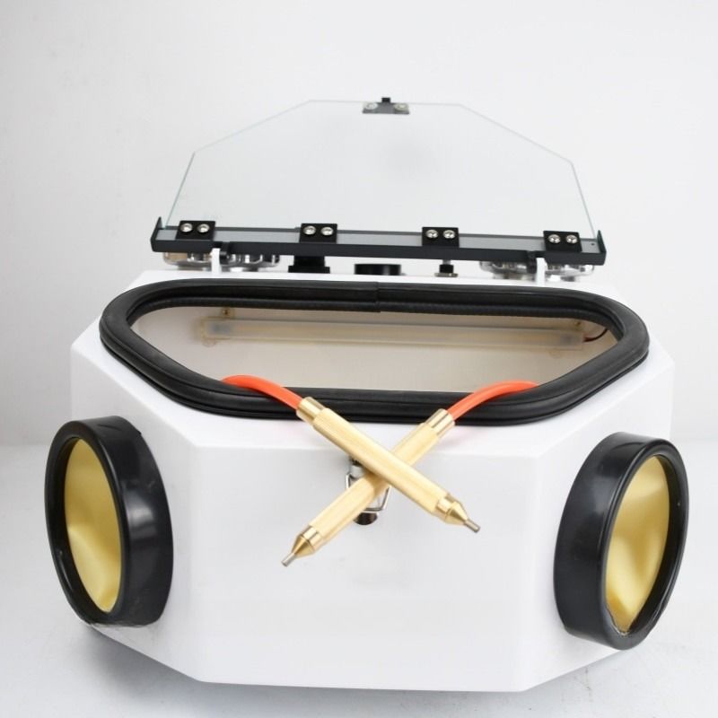 آلة تفجير الرمل المختبرية لطب الأسنان ذات الخزان المزدوج لتلميع التيجان الخزفية للأسنان مع ضوء LED وفوهة تفجير الرمل للأسنان