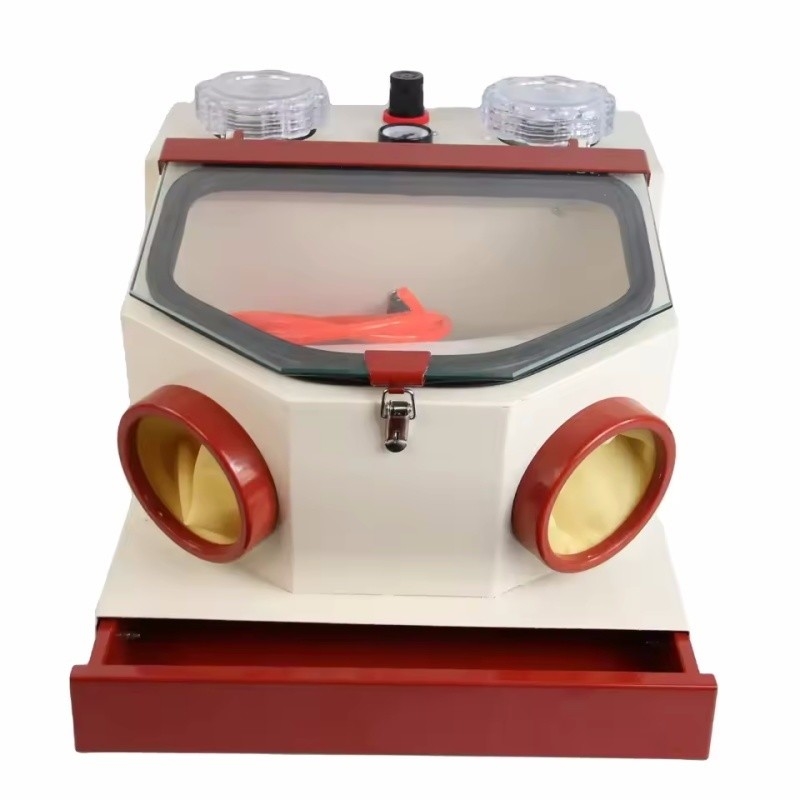 معدات أسنان قوية، جهاز تنظيف رملي لمختبر الأسنان، ضوء LED، نافذة كبيرة، قلم مزدوج، جهاز تنظيف رملي للأسنان مع درج